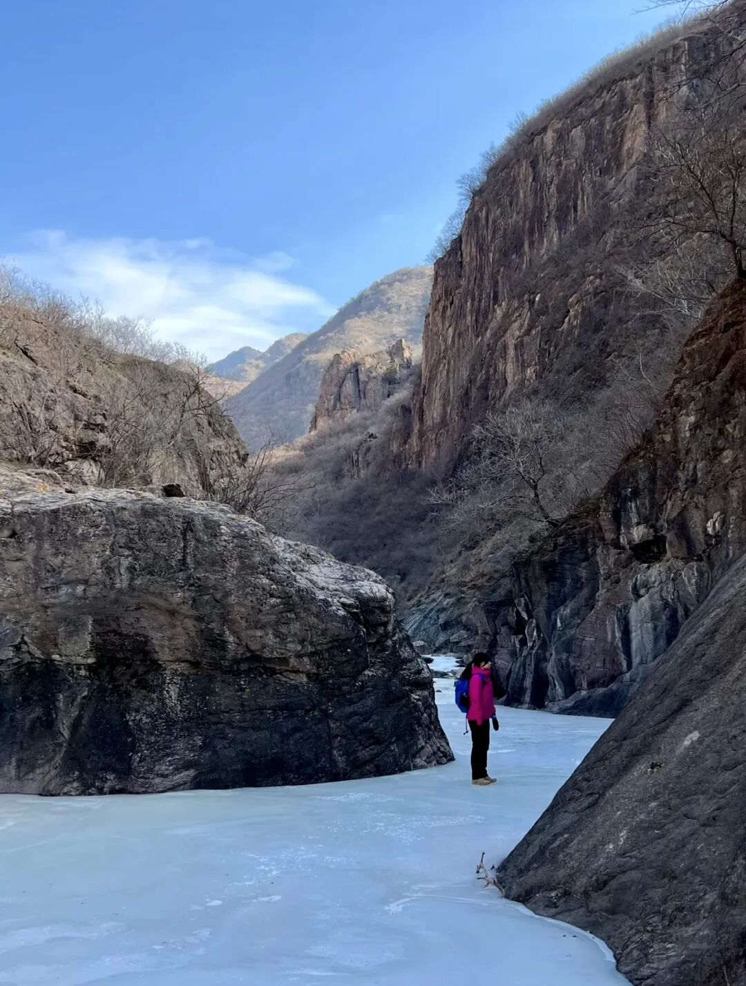 九龙大峡谷可以称得上是户外人的天堂,夏天可以溯溪享受清凉,到了冬天,这里又是很棒的踏冰看冰瀑的路线,沿蜿蜒的河道前行,一步一景,一步一叹,冬季的冰雪之美、户外徒步的野趣之美,这里都有。