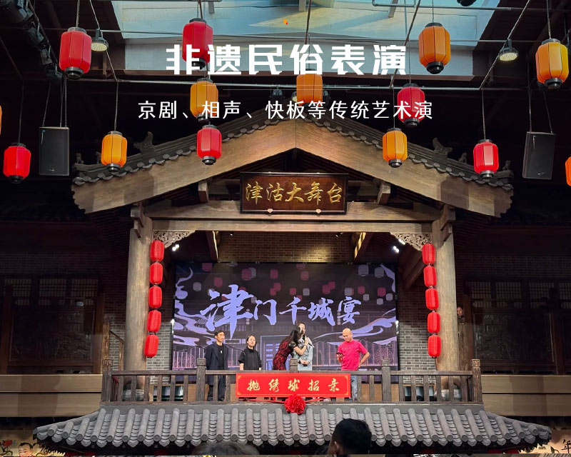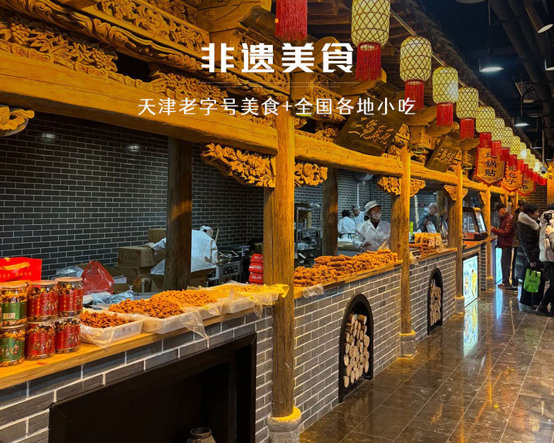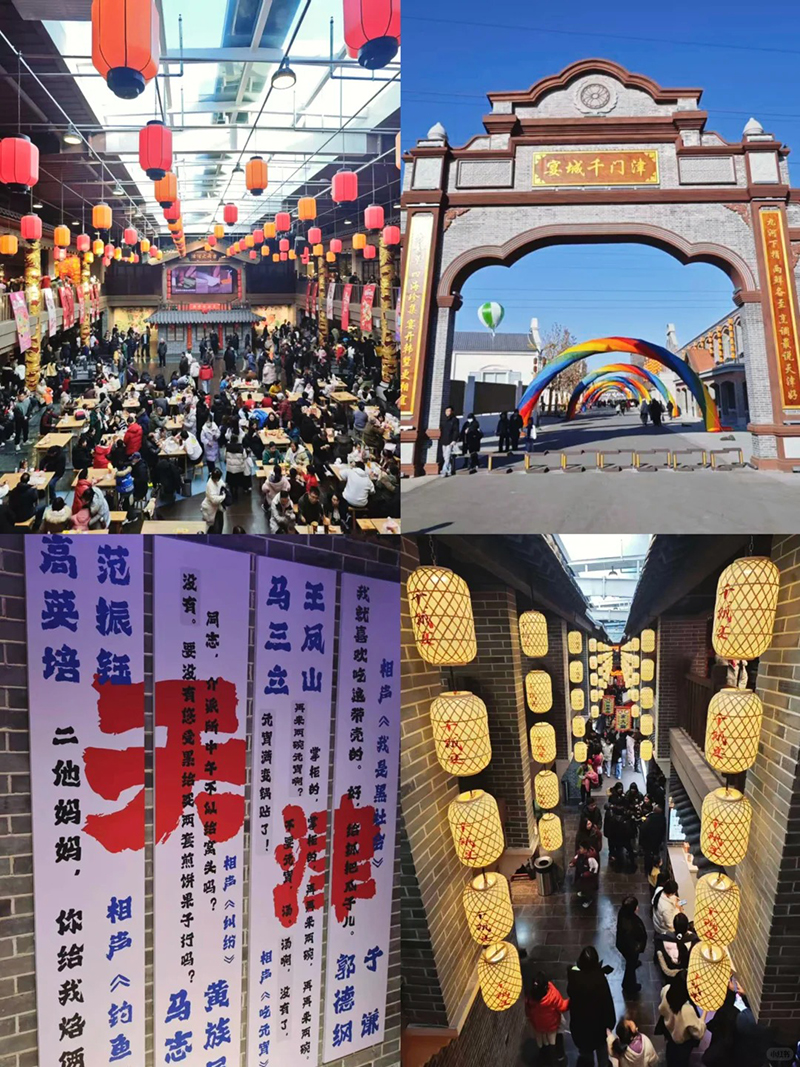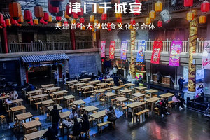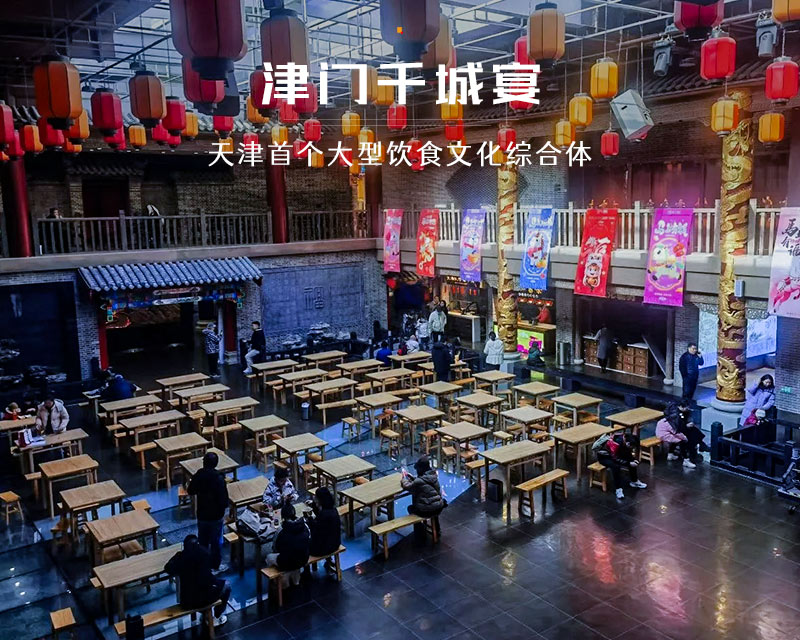 津门千城宴饮食文化馆是天津北辰区一处由老食品厂改造而成的文旅商业综合体,它巧妙地将天津的饮食文化、民俗传承与历史记忆融为一体,为您提供一场沉浸式的城市记忆体验。步入场馆,一层是热闹非凡的动态体验区,设计有“四街两道一海河一世界”,您可以在千城美食街品尝到狗不理包子、耳朵眼炸糕等现做的天津老字号小吃以及来自全国各地的风味美食,在天津话街区感受地道的方言魅力,在霓虹大道和仿真的海河景观中拍照打卡,整个氛围仿佛穿越到民国时期;上至二层,则进入了静谧的文化展示空间,以“六院三史两物一乐园”的布局,生动展示了天津的工业历史、运河文化、韩家墅村史以及红色记忆等,让您在品尝美食之余,也能深入了解本地的历史文化脉络。