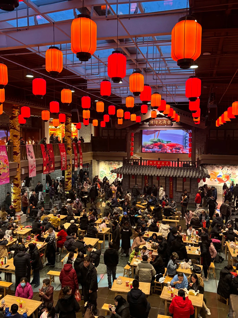 - 中午踏入【千城宴】身着旗袍的NPC在街巷间穿行表演,财神巡游、抛绣球等互动将您瞬间带入情境。沿街品味现摊的煎饼果子、热气腾腾的耳朵眼炸糕等地道津味,耳边是地道的天津话叫卖声,眼前是复刻的霓虹街景与海河光影,随手一拍皆是风情。二楼清真餐厅,品尝依托隔壁大型批发市场直供的新鲜食材所制的佳肴,感受“食材工场”模式带来的实惠与本真。