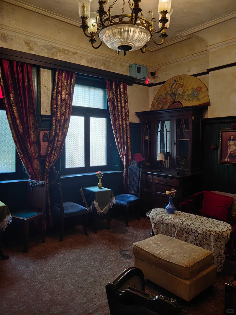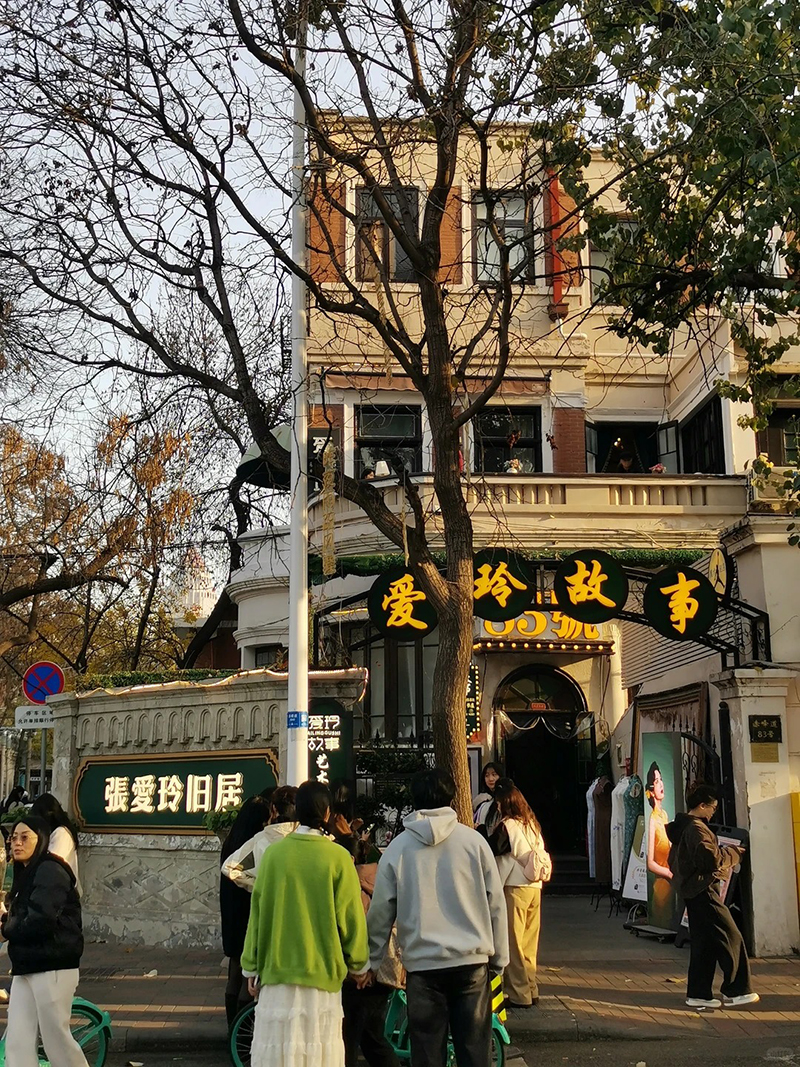旧居内部结构完好,老虎窗、深色木地板、壁炉等元素保存至今,呈现出典型的西式生活空间。经过修缮后,现以“爱玲故事”为主题运营,内部陈列了老照片、珍贵书籍与影音资料,并设有咖啡茶饮区,将文学空间与现代休闲巧妙结合。这里不单是一座历史建筑,更成为连接今人感受张爱玲早年生活气息与城市文化记忆的静谧一隅。