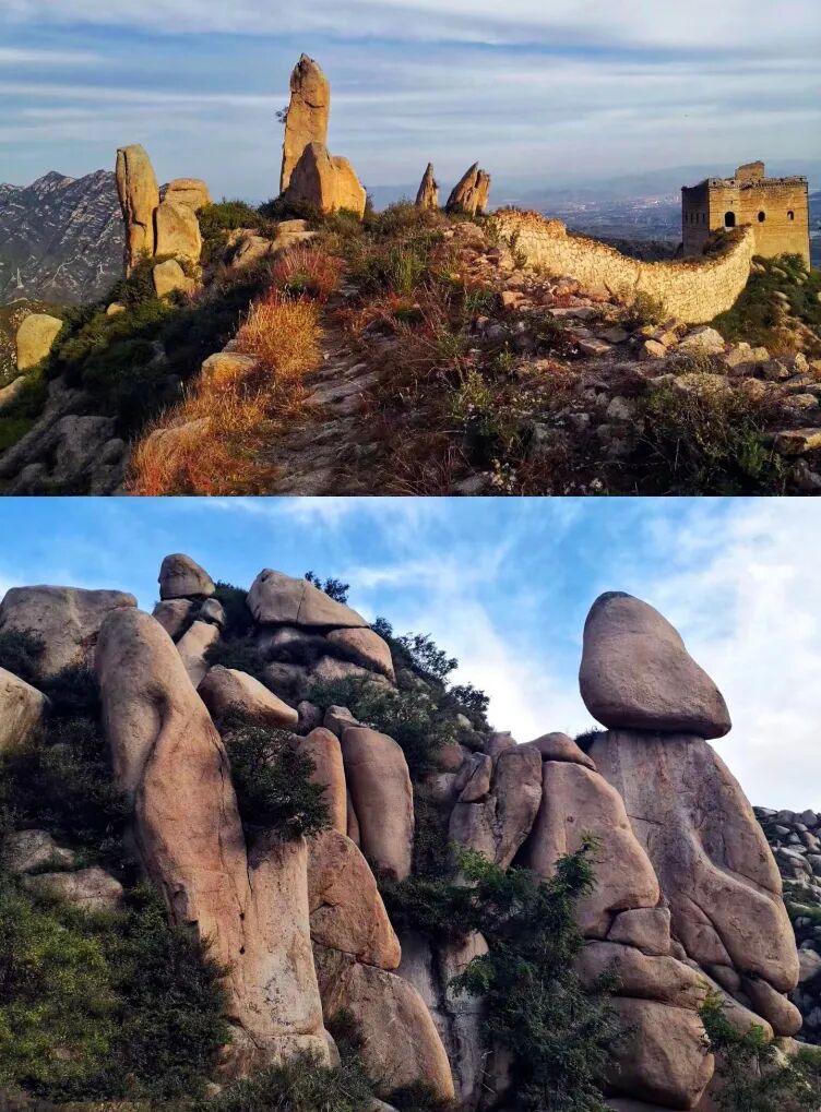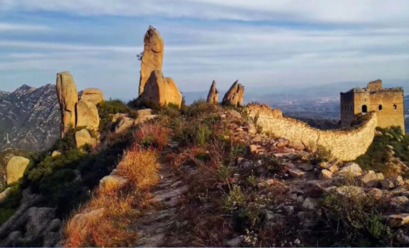 自古有言:“一岭分燕赵,一山分两国”,这讲的便是涞源紧邻白石山的插箭岭长城。数百年来,这里多次处在战争的前沿,烽烟四起,战马嘶鸣。如今尘埃落定,过往经历让这段古城墙变得更加深沉厚重。插箭岭长城距离白石山不远,城墙基本上就地取材。这与北京等地的青砖长城,截然不同,这也形成了插箭岭长城的独特之处—石头长城。走过整段长城,停下脚步回头看,白石山侧插箭岭下,野草与沙石带几分悠远荒凉,城墙之上尽是艺术与传奇,沧桑与悲壮。