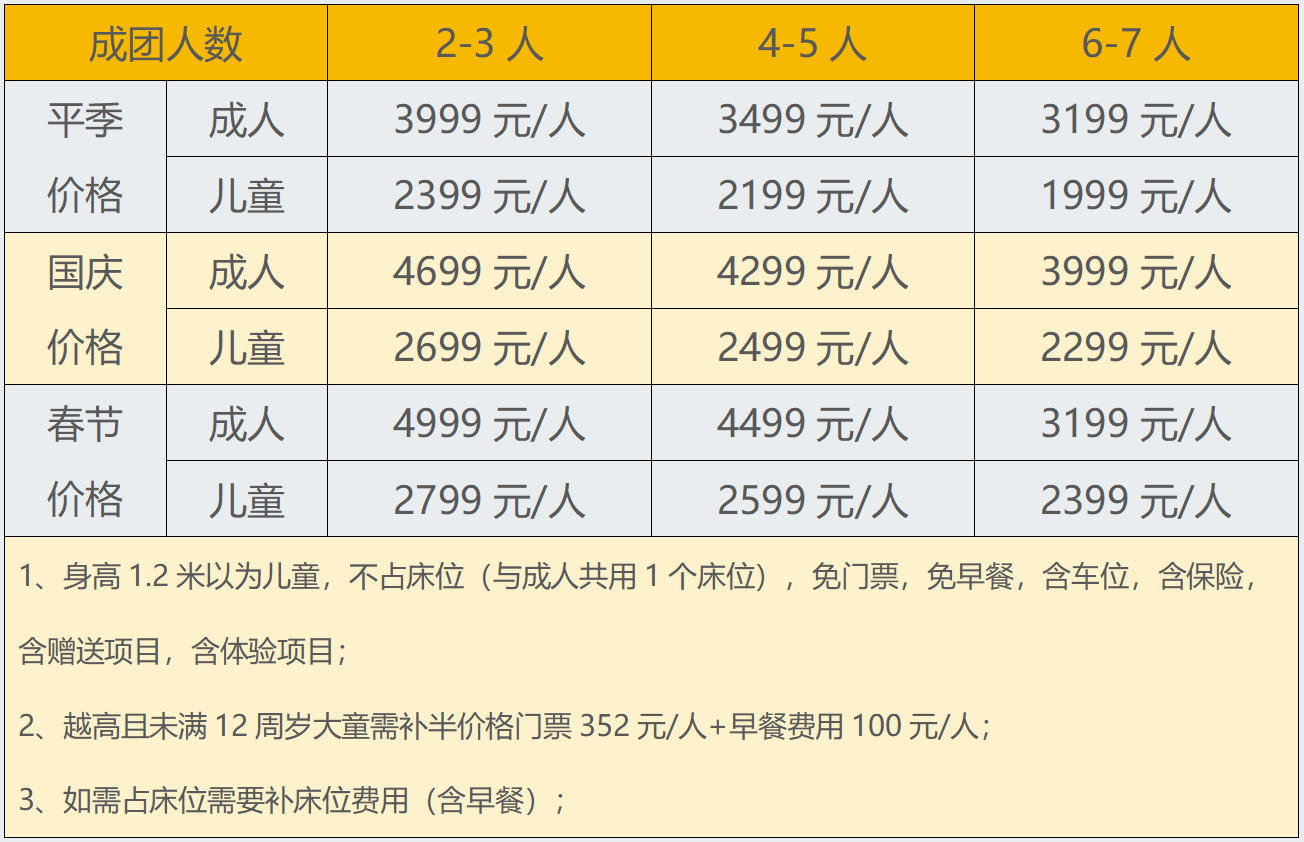 成人:2999元/人,儿童:1899元/人