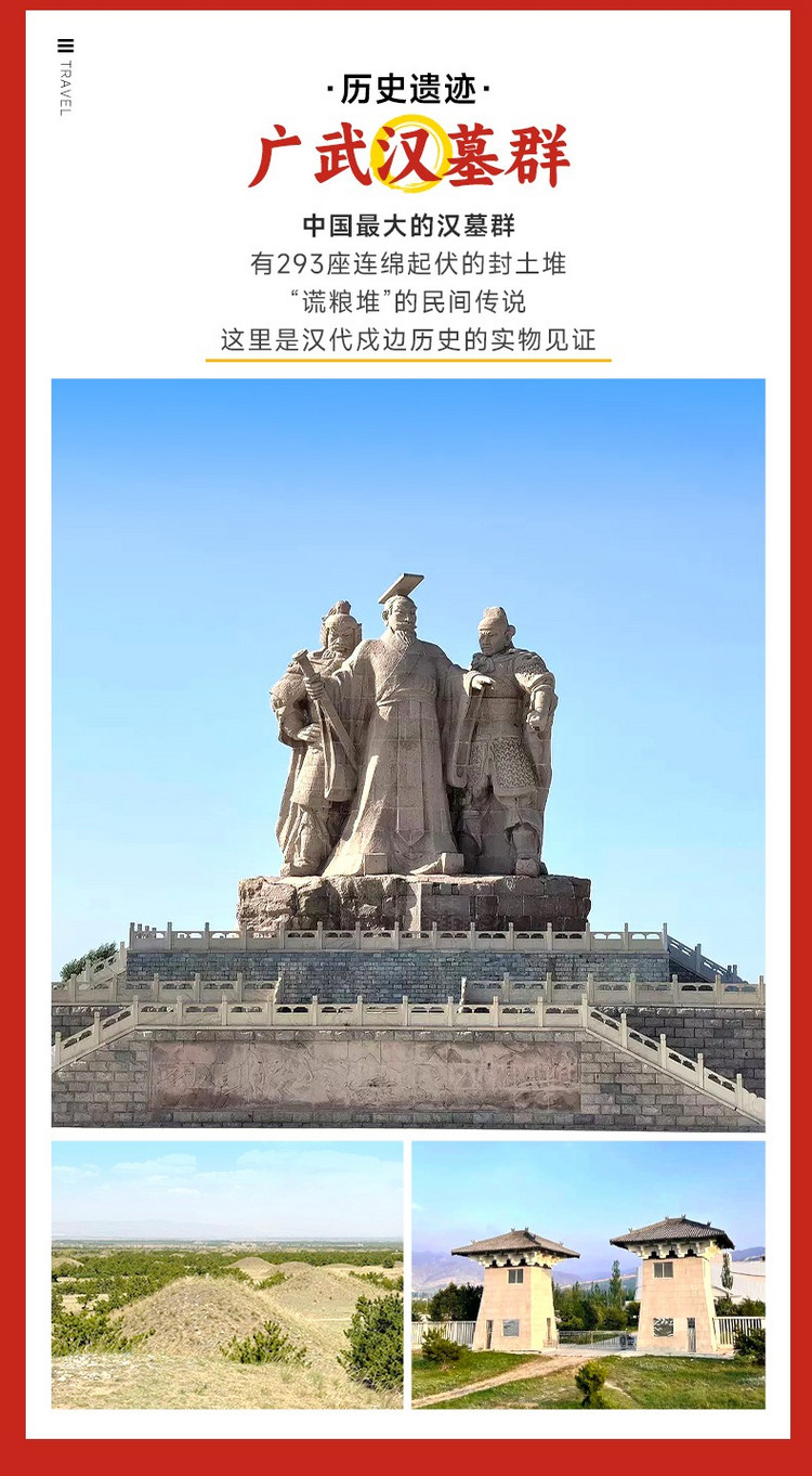 广武明长城与广武汉墓群,一个是雄伟的军事防线,一个是肃穆的将士陵园,它们共同见证了古代北方游牧民族与汉民族之间的冲突与融合。来到这里,你不仅能欣赏到壮丽的风景,更能触摸到历史的脉搏,收获一段难忘的历史文化之旅。