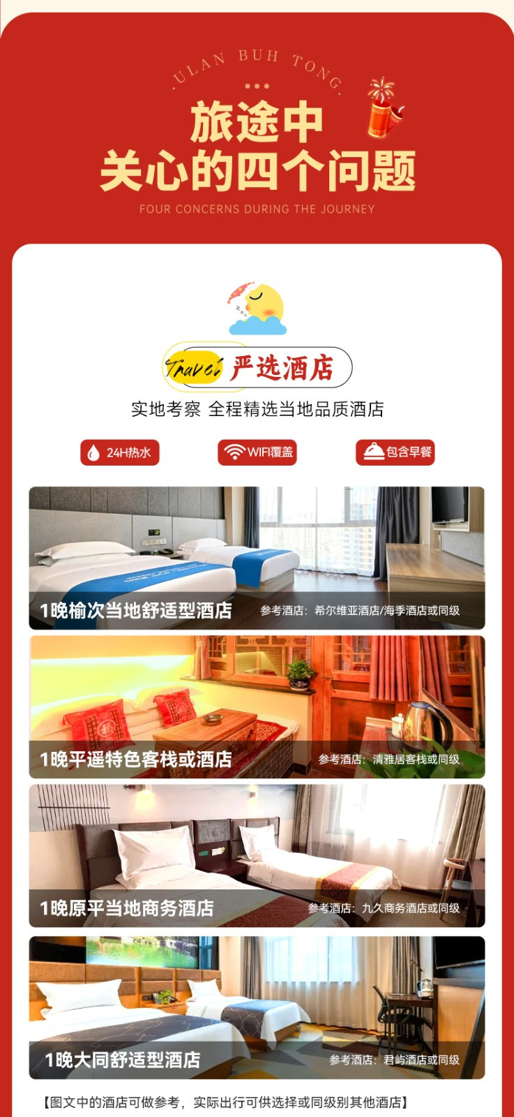第一天:榆次舒适型酒店标间(三钻级)