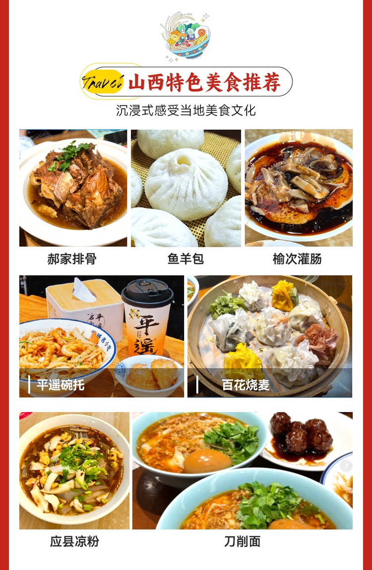【豆腐丸子】【牛肉锅贴】【保德油糕】【神池月饼】【蒸肉】【石头饼】【摊黄】【丸子汤】【万卷酥】【古城酸奶】【土豆筋】