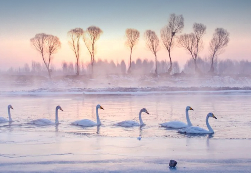 - 早起集合前往『杨柳湾天鹅湖』,这里的日出、天鹅、晨雾非常出片,运气好的话还能欣赏到这里绝美的雾凇美景!