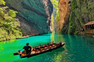 我们乘车前往【屏山峡谷】,屏山峡谷被誉 为“中国仙本那”,这里是恩施旅游必览之地。屏山四周峭壁悬空,碧水环绕,青 山翠绿,在峡谷中的水面游弋,抬头看去,四周峭壁耸立,溪流环绕。