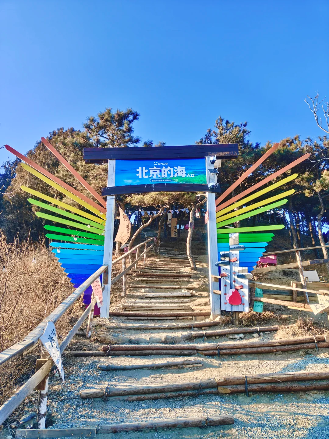 - 10:30|到达徒步起点,在领队带领下开始徒步日光山谷,它是北京新晋网红打卡地,位于密云区穆家峪镇,占地超千亩,景区密云水库建有180°观景台、360°观景台。站在平台上,可将“北京的海”尽收眼底。