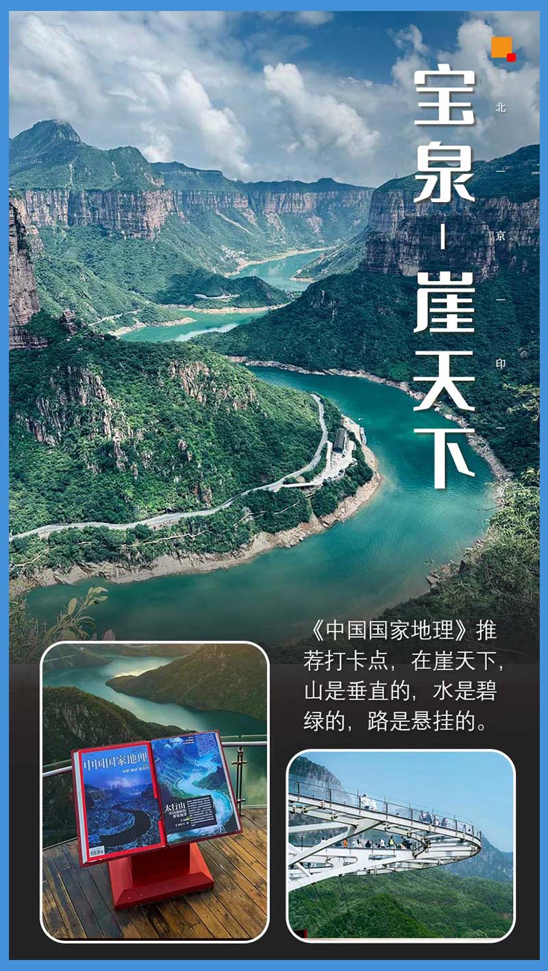 宝泉崖天下,以崖惊天下,既有荣登《中国国家地理》杂志封面的中国曲峡游龙湾,又有惊险刺激的悬崖蹦极、悬崖秋千、悬崖飞拉达等悬崖挑战项目,被誉为“太行山里的蓝眼泪”、“一生必去的悬崖旅行”。