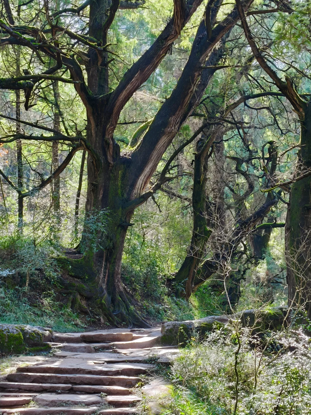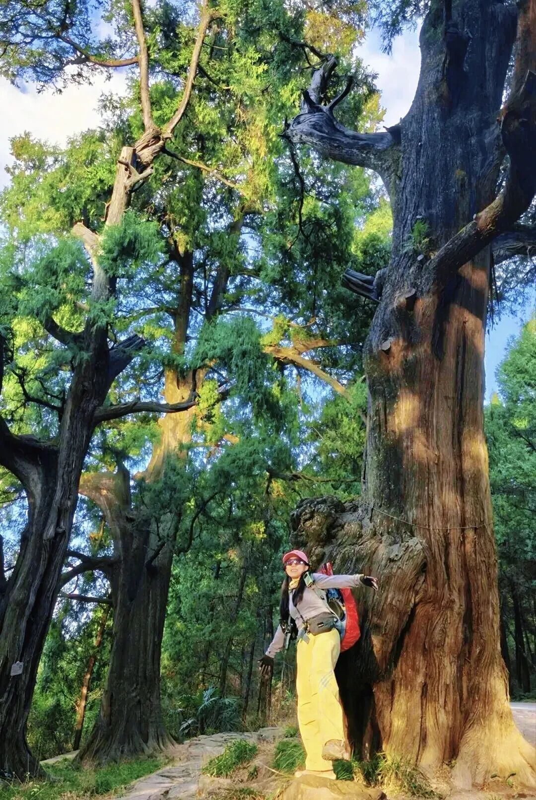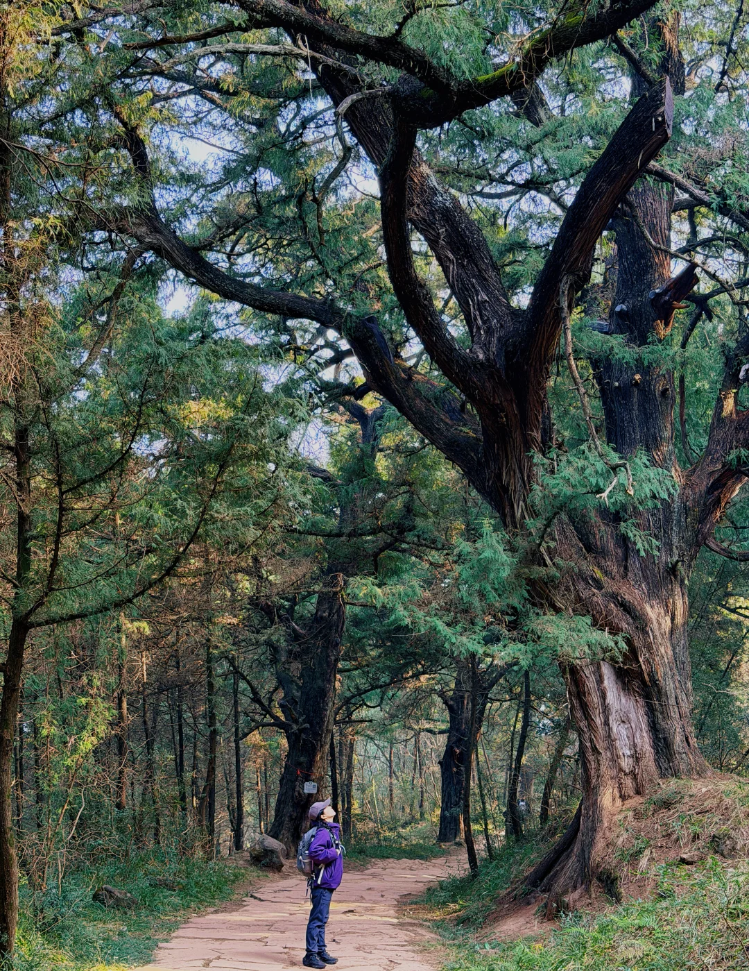 沿途可以观赏到:1. 古柏王国:挂牌古柏4133株,平均树龄超千年,有张飞柏、天蓬柏等奇树;是翠云廊古柏最密集的区段;浓荫蔽日,春秋光影绝佳,2. 古迹沧桑:金牛道(剑阆官道)遗存;沿线有古楼铺、云城寺遗址、断碑梁残碑;游客极少,几乎无商业化,氛围纯粹3. 视野亮点:山脊线天气好时可观云海;林间安静,只有风声鸟鸣。