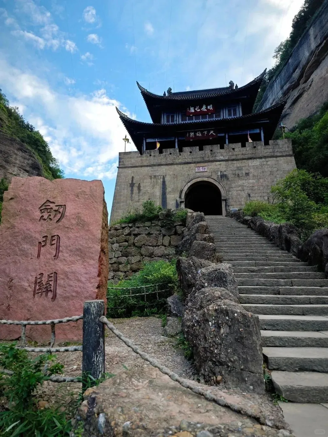 早起餐后乘车前往剑门关景区,领队办理团队票后进入【剑门关景区】游玩, 打卡「天下第一关」,挑战鸟道/猿猱道,中午可统一AA午餐(特色豆腐宴),景区主要景点有诸葛亮最早修筑的关楼,以及一线天、鸟道、猿猱道、梁山寺等。领队将带大家以下列顺讯徒步游览:景区南门-关楼-一线天--石笋峰--鸟道(或自费猿猱道)--梁山寺(玻璃观景台自费)--大穿洞--天梯峡栈道--绝壁廊--关楼--景区南门,这是最大限度游览景区精华的徒步路线。