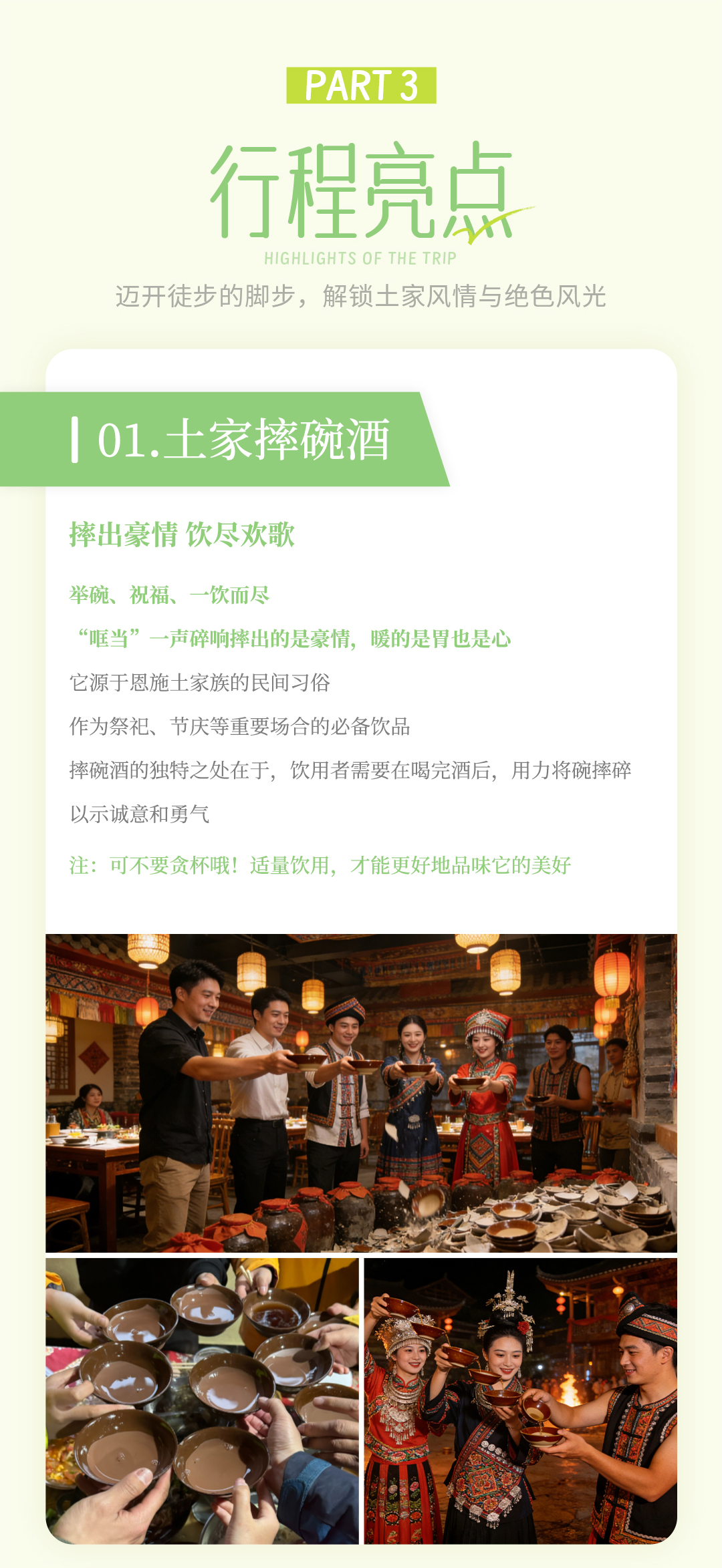 ​- 下午我们将乘车返回恩施,领队会跟随大巴车把队员送到恩施许家坪机场或恩施站。至此,本期的恩施徒步告一段落,大家可以带着一路的美好记忆,奔赴家中的烟火与安宁。