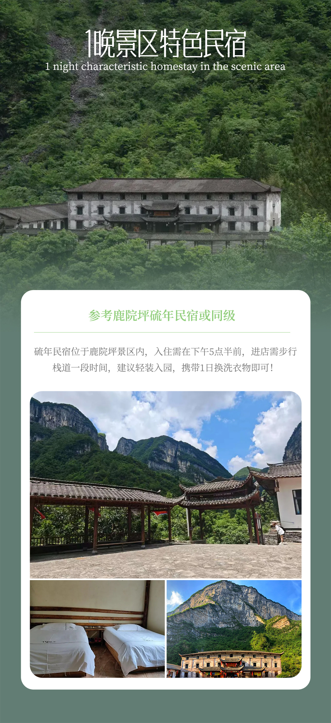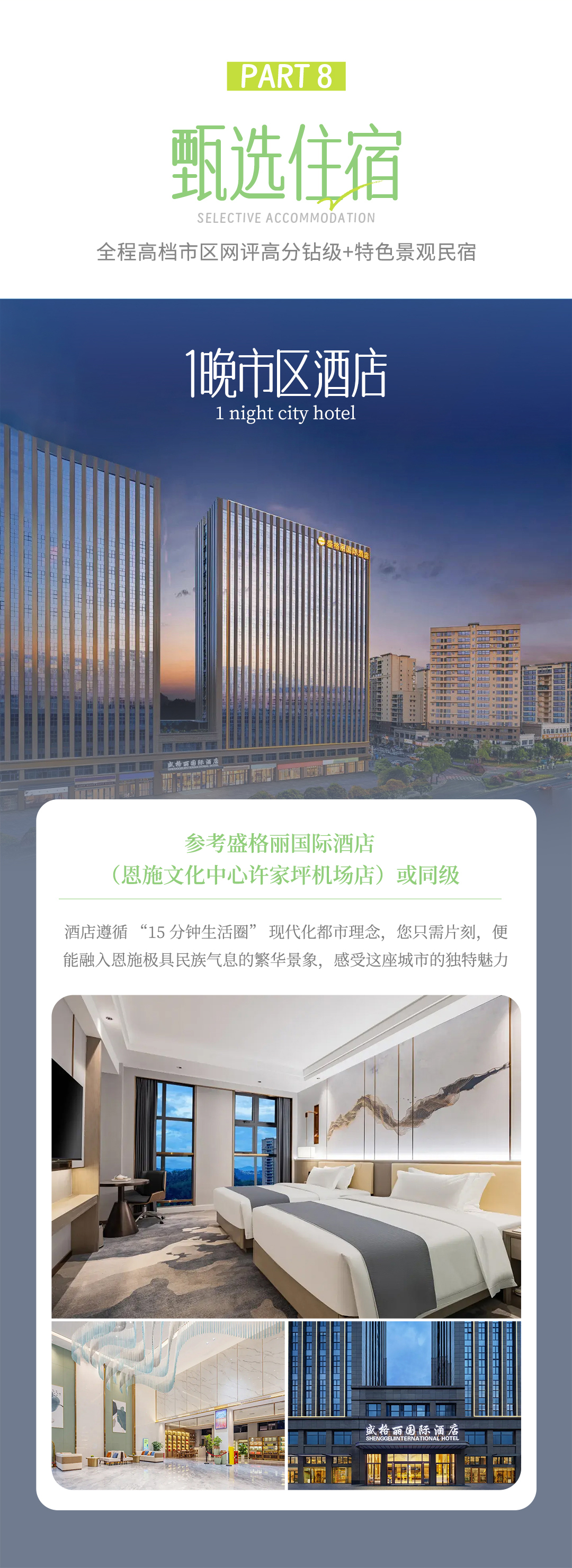 答:1晚恩施市区4钻酒店 、1晚沐抚古镇精品酒店、1晚景区观景民宿;