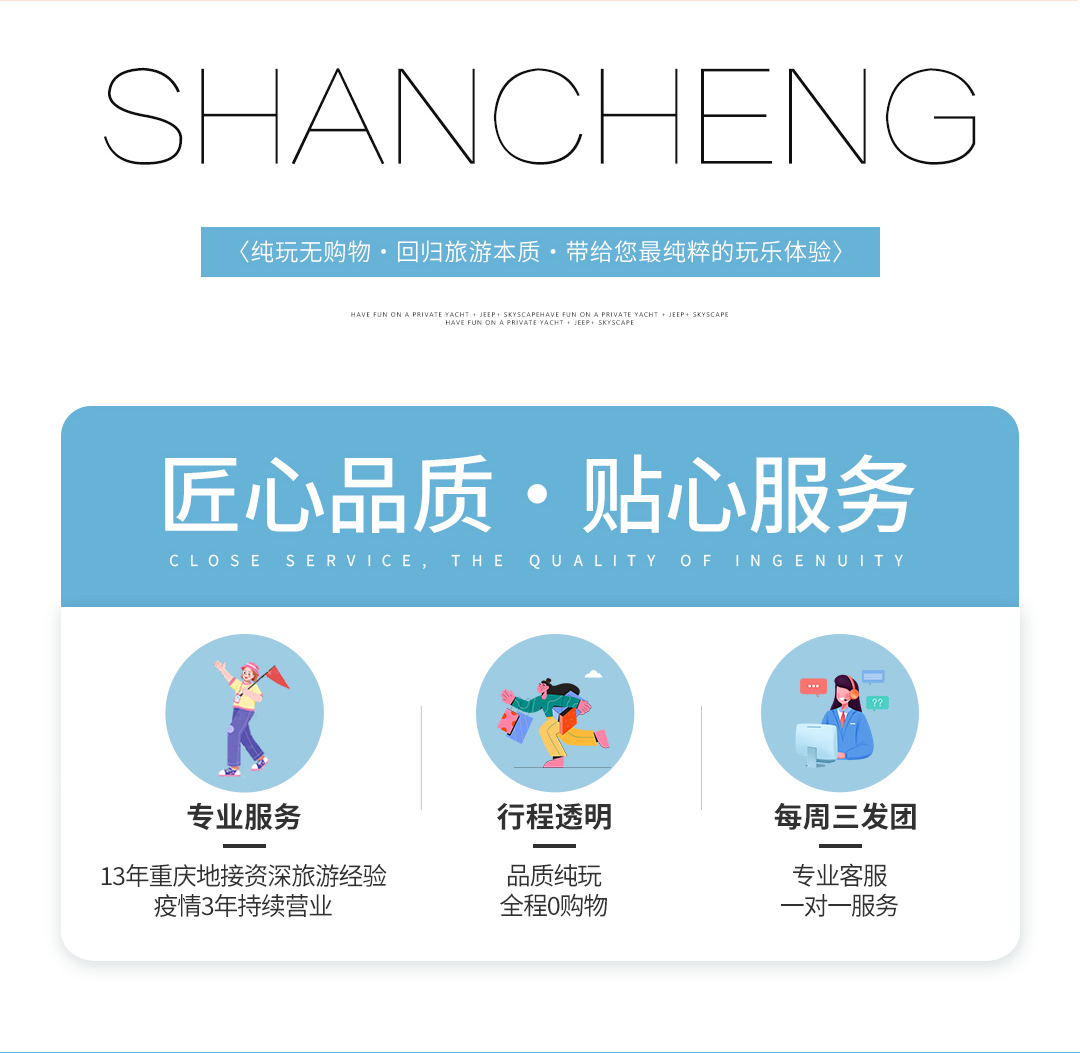 注:重庆餐食风味麻辣,如不能接受请提前联系导游调整。