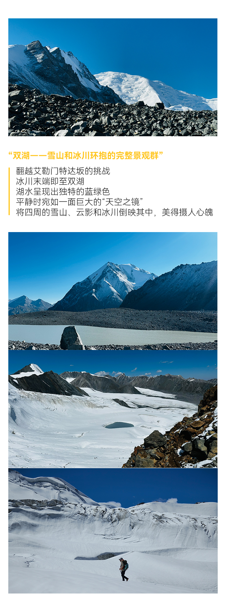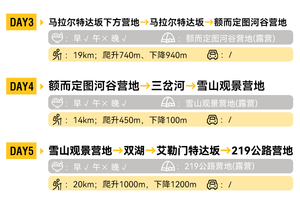 D5 雪山观景营地-(徒步3KM,约3H)双湖-(徒步2KM,约2H)-艾勒门特达坂-(徒步15KM,约5H)219公路营地
