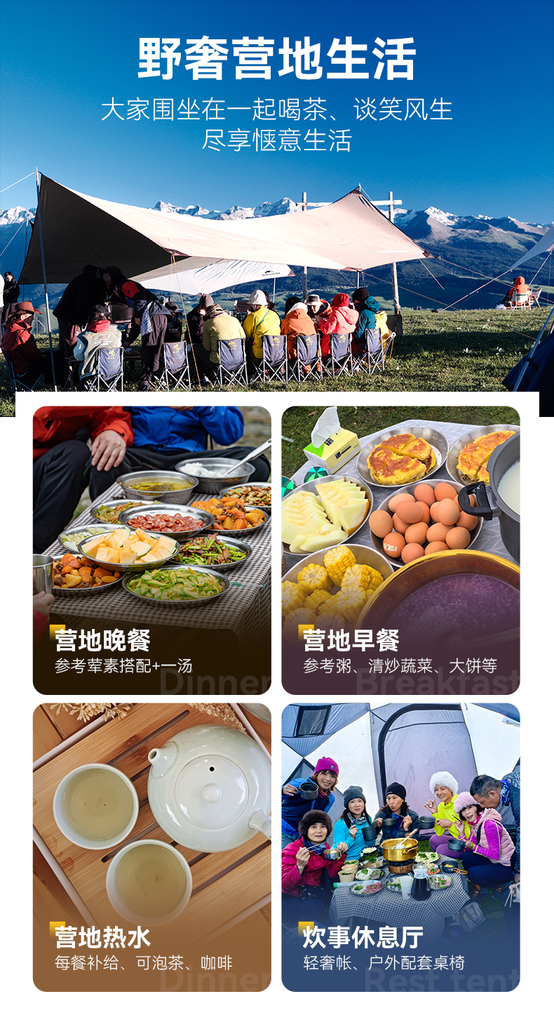 ▷ 餐食:早餐(营地餐)午餐(自理路餐)晚餐(庆功晚宴)