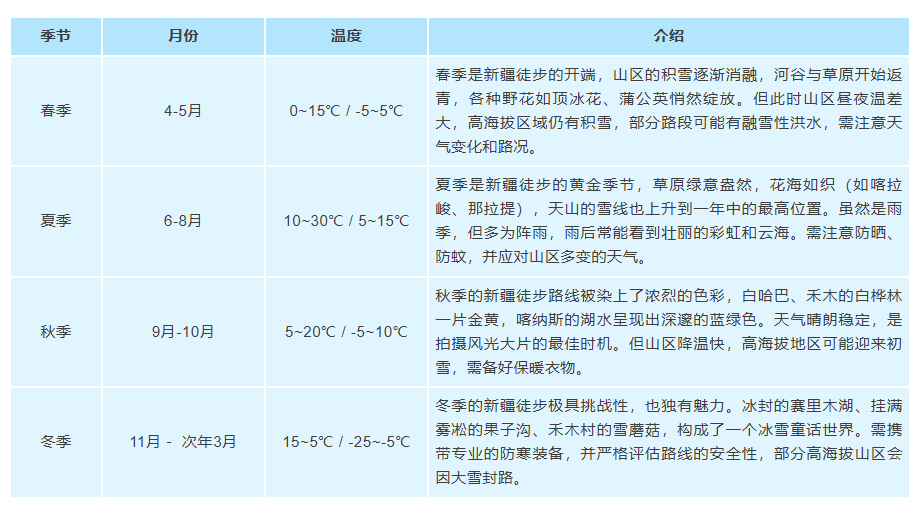 1.新疆地貌复杂,昼夜温差达10摄氏度到15摄氏度,既要注意防暑又要预防山区天气突变。
