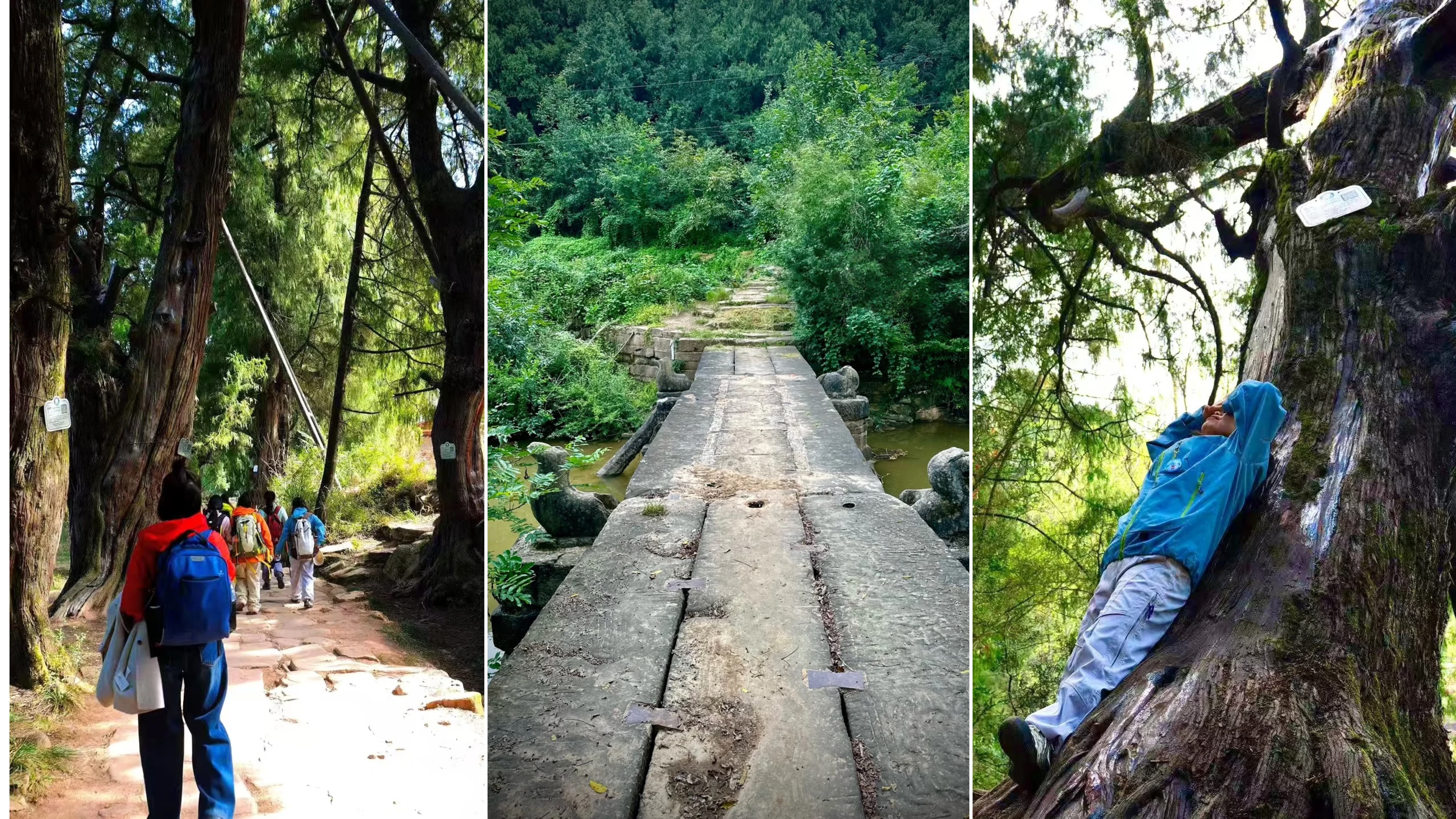 第1天徒步金牛古道西线:第一段汉阳铺-石洞沟-抄手铺 徒步约7Km/第二段拦马墙-清凉桥-普安镇徒步约8Km,全程15公里累计拔高380米为古柏精华路段。