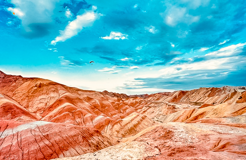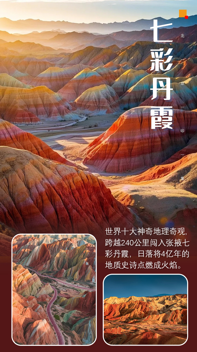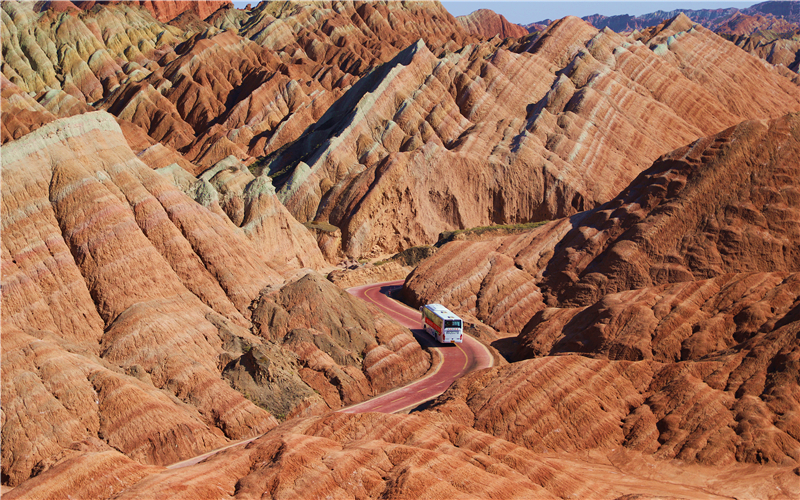 ​- 下午抵达张掖【七彩丹霞】游览,观看形成于侏罗纪三期,距今一亿三四千万年前的丹霞地貌,我们将在这里拍摄完醉美日落返回。