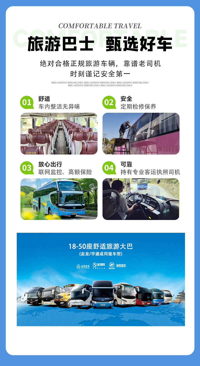 1)交通:往返空调旅游大巴包车费用及司机食宿等费用(不含景区小交通);
